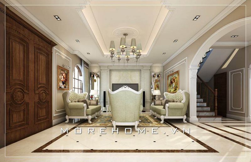 Thiết kế không gian phòng khách biệt thự sang trọng với nội thất tân cổ điển thể hiện cá tính và đẳng cấp của gia chủ