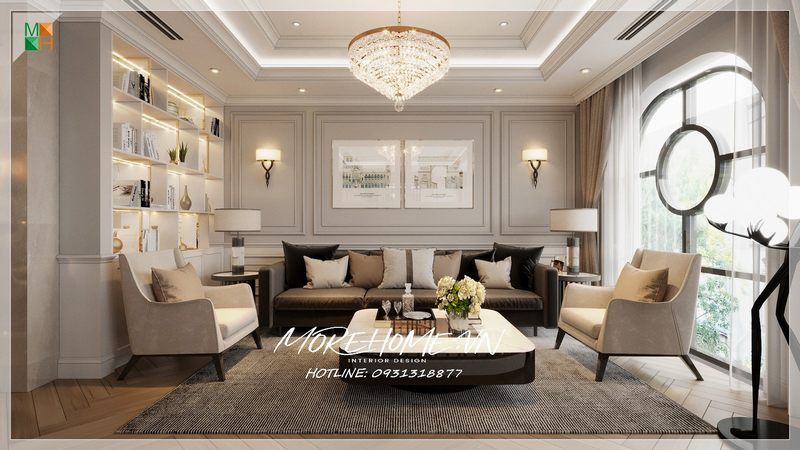 Thiết kế nội thất phòng khách chung cư phong cách tân cổ điển