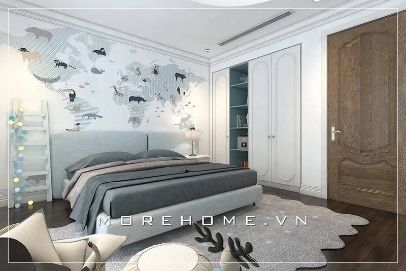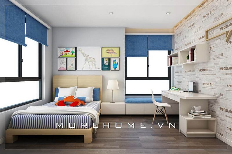 Nội thất phòng ngủ bé trai là ấn tượng, cửa sổ được thiết kế để tối ưu hóa ánh sáng từ bên ngoài, giúp căn phòng luôn có cảm giác thoải mái và tràn đầy sự tươi mới.