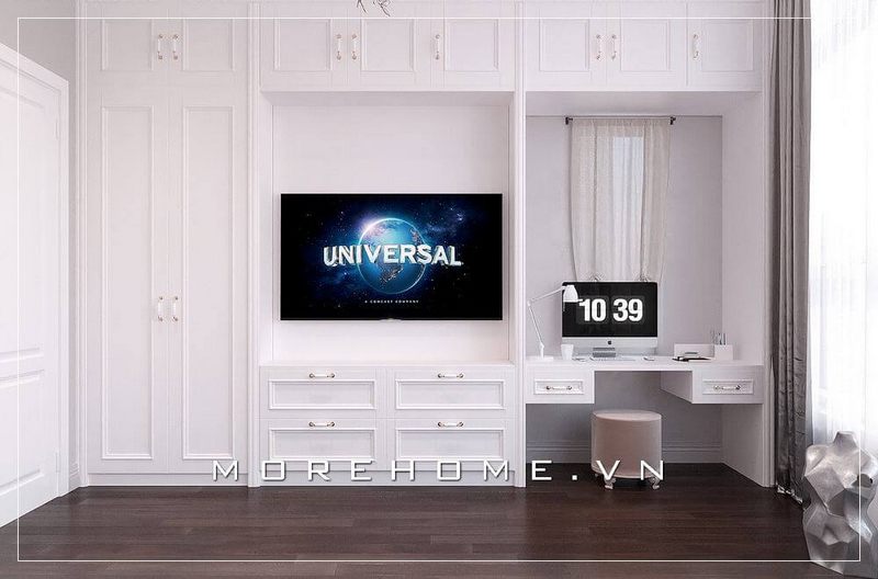 Gợi ý mẫu tủ quần áo đa năng kết hợp kệ ti vi, bàn làm việc... tiện dụng, nếu bạn sở hữu một không gian phòng ngủ sang trọng thì đây sẽ là sự lựa chọn tuyệt vời dành cho bạn đấy nhé.