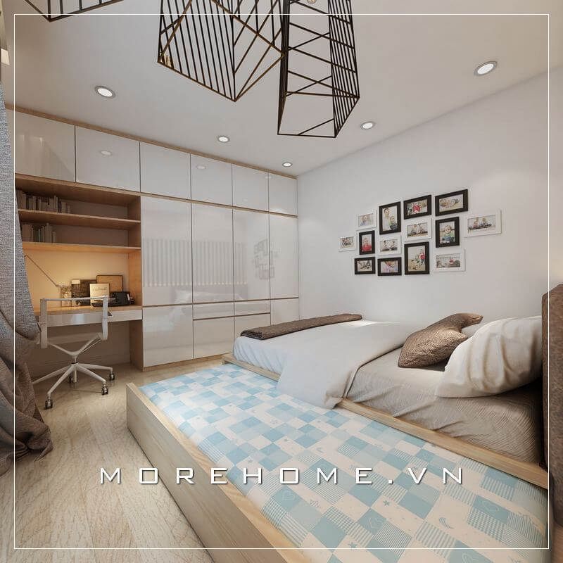 Mẫu tủ quần áo gỗ công nghiệp hiện đại với màu trắng chủ đạo mang đến sự tinh tế và nhẹ nhàng trong phòng ngủ của chung cư.