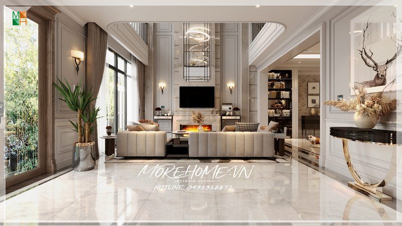 Việc thi công nội thất cho showroom đá phong thủy An Thiên cao cấp theo phong cách tân cổ điển.